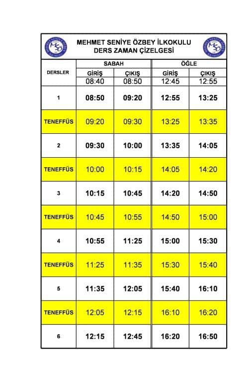 6 Ekim 2025 Pazartesi gününden itibaren okula giriş-çıkış saatlerimiz değişmiş olup aşağıda ki zaman çizelgesi uygulanacaktır.